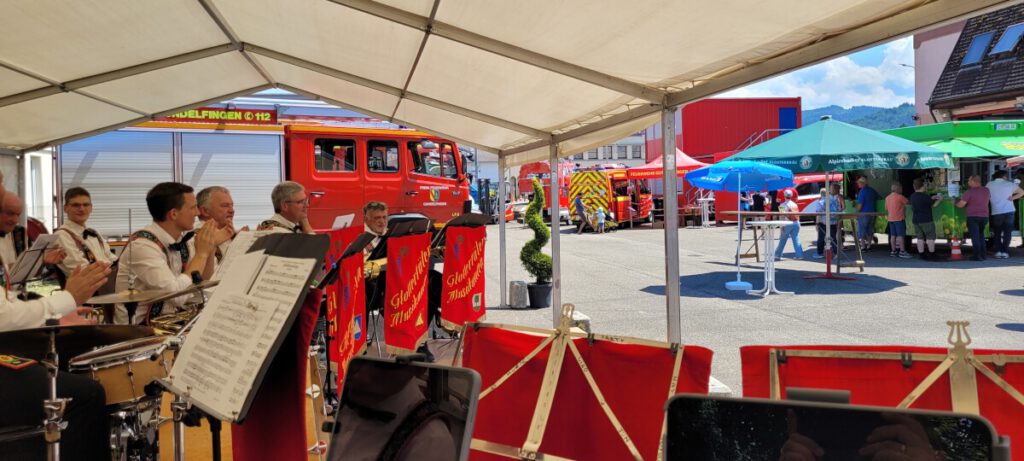 Die Glottertäler Musikanten durften beim Hock der Freiwilligen Feuerwehr Gundelfingen für Unterhaltung sorgen. Vielen Dank für die Einladung – vor allem für den schattigen Platz und die super Verpflegung!