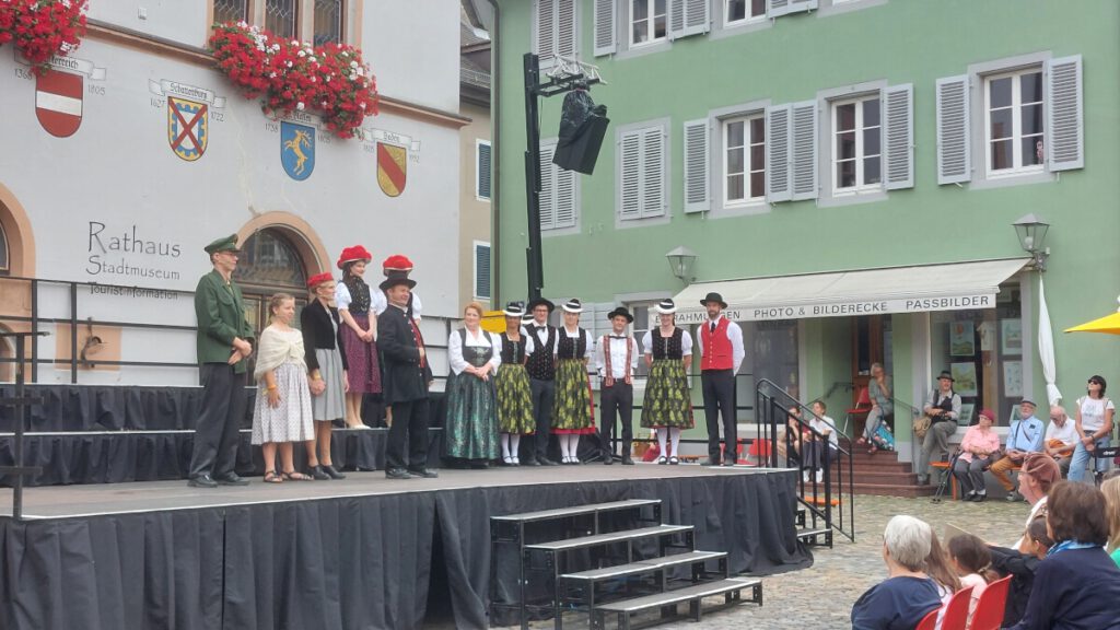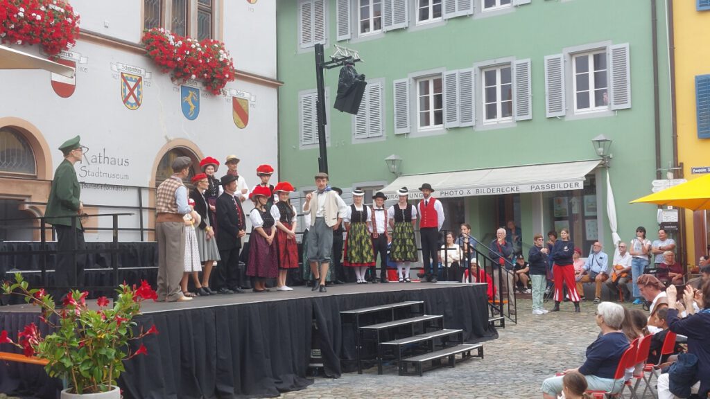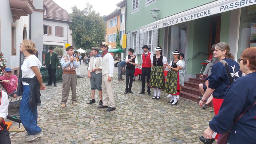 Zusammen mit der Akkordeontrachtengruppe und der Volkstanzgruppe Biederbach durfte unsere Trachtengruppe (wieder einmal) das Stück „Schwarzwälder Kirsch“ bei StaGes in Staufen umrahmen. Dafür haben wir uns die letzten beiden Sommertage im September ausgesucht.