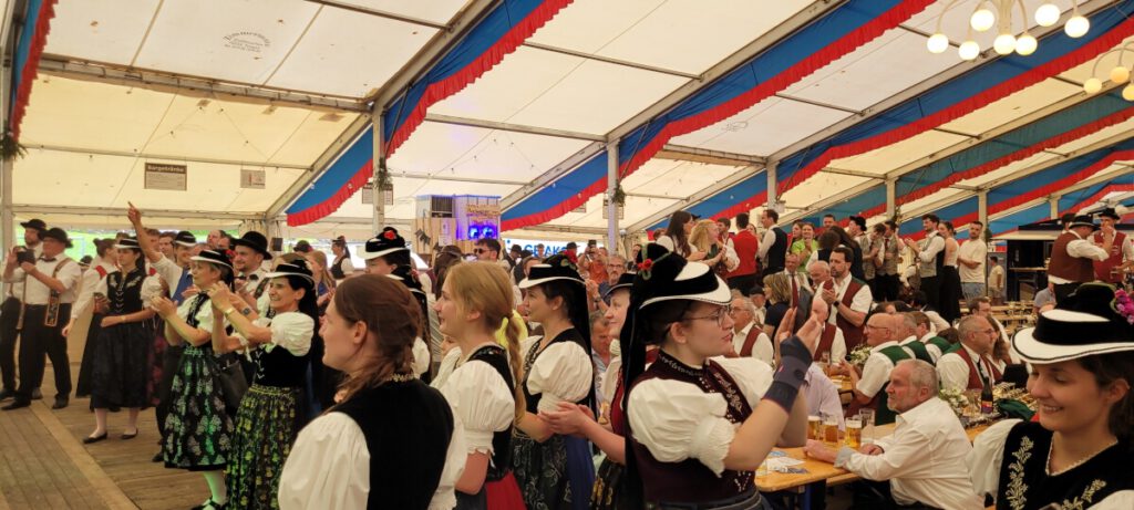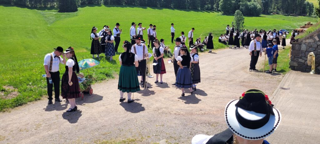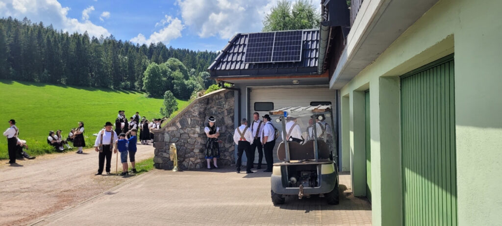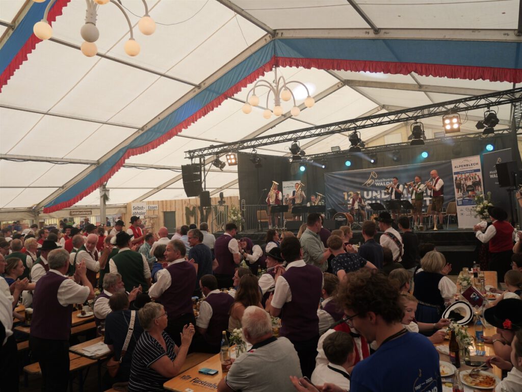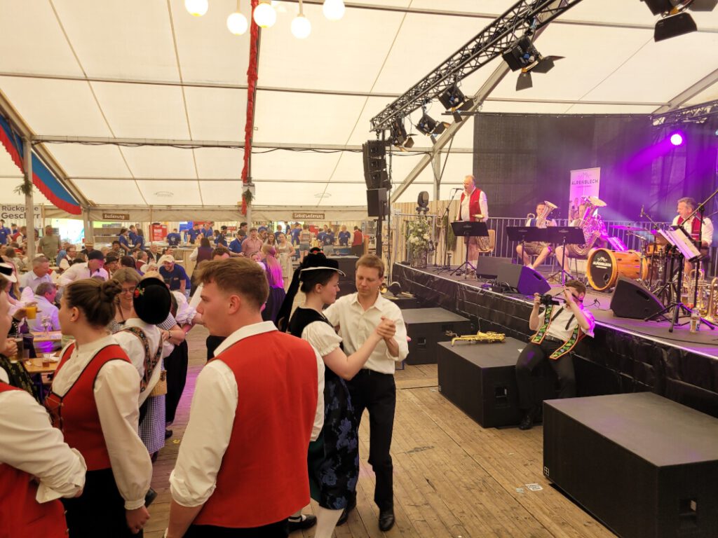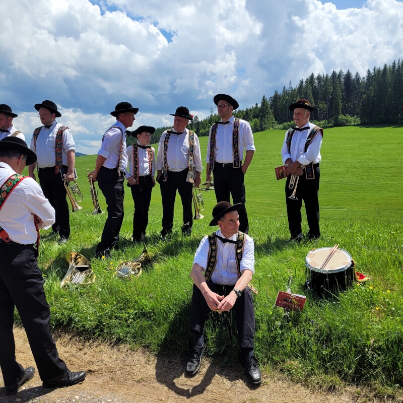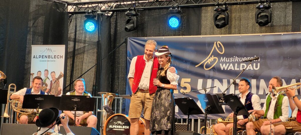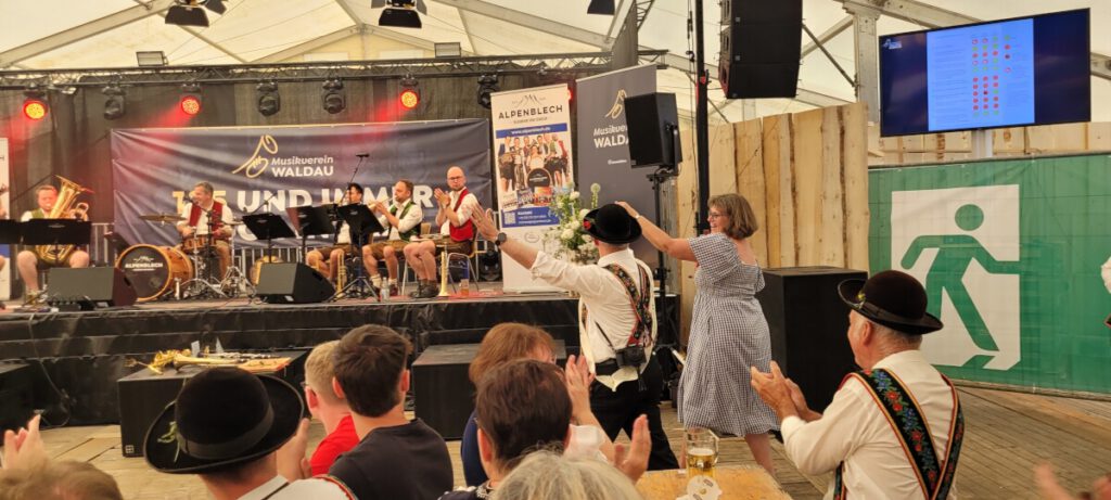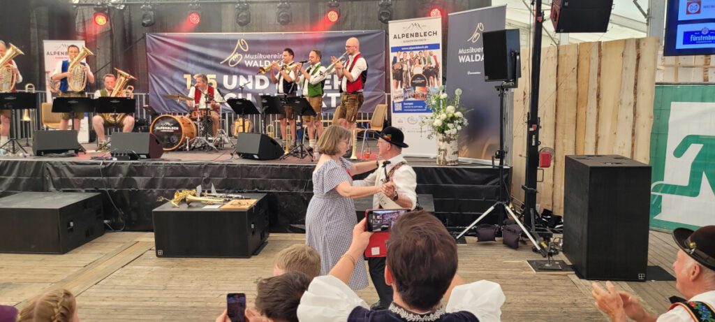 Wenn ein Musikverein sein Jubiläum feiert, sind wir natürlich gerne dabei. Nachdem wir die ersten Stunden bei unserem Kollegen Stephan, der seinen Wohnort klug gewählt hat, und in der Umzugaufstellung verbracht haben, konnten wir den Festumzug genießen. Die kluge Wahl der Strecke (bergab!) hat uns den Weg erleichtert. Im Festzelt konnten wir – dank Alpenblech tatsächlich noch den „Junggesellenabschied“ von unserem Martin ein bisschen feiern. Ein großes Dankeschön geht an den MV Waldau für die Einladung und diesen schönen Nachmittag – wir haben gerne bei euch gefeiert!