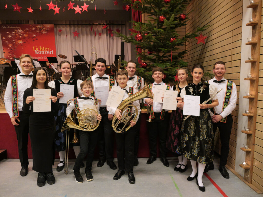 Am Lichter-Konzert konnten die Jugendlichen ihre Leistungsabzeichen entgegen nehmen. Überreicht wurden sie von den Vorsitzenden Simon Lickert und Jonas Lindinger, auch Elternvertreterin Ulrike Strecker fand lobende Worte für den Einsatz.