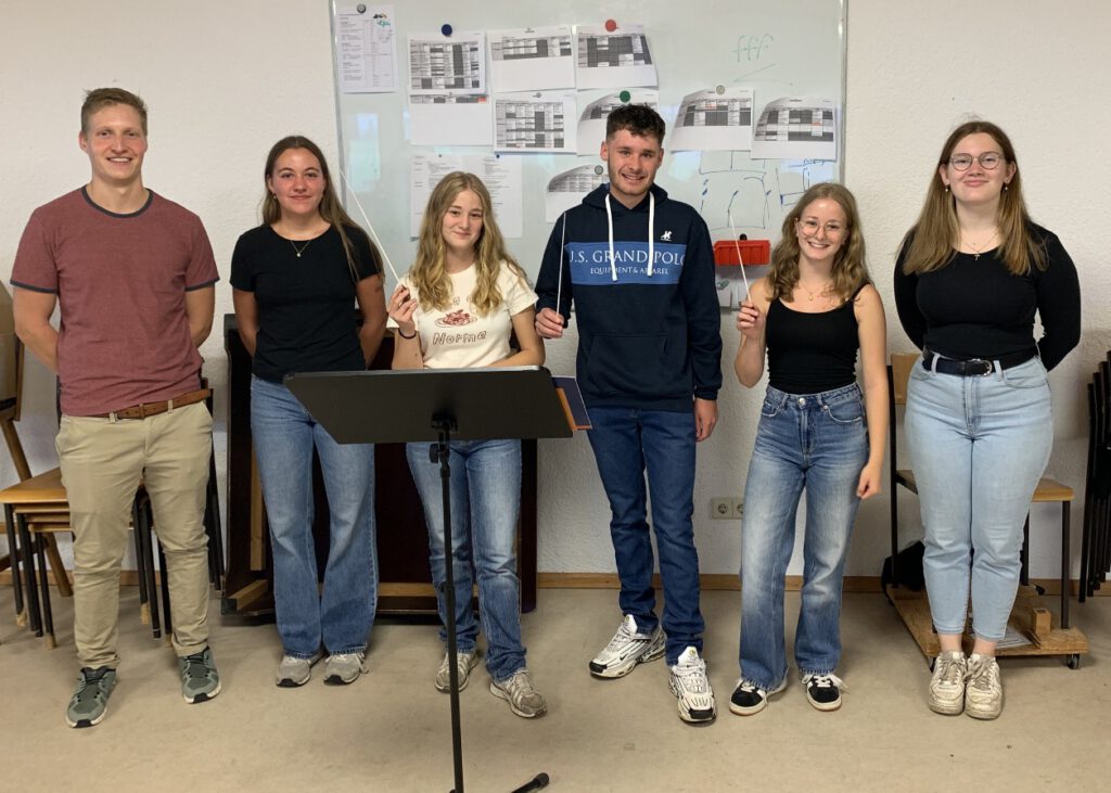 Da das aber gar nicht so einfach ist, wie es aussieht, gibt es bei uns bereits früh (vor Eintritt in das Bläserjugendorchester) die Möglichkeit, das Zusammenspiel zu üben. Die Leitung übernehmen immer Jugendliche, die schon weiter fortgeschritten sind. Im Sommer 2025 haben Elena Herbstritt und Clara Schöne die Aufgabe an Clara und Luisa Strecker sowie Sebastian Nopper übergeben.